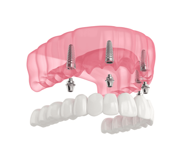 All-on-4 dental implants provide a revolutionary solution for patients missing most or all teeth. Using just four strategically placed implants, we can support a full arch of permanent teeth, restoring function, aesthetics, and confidence in a single day procedure.