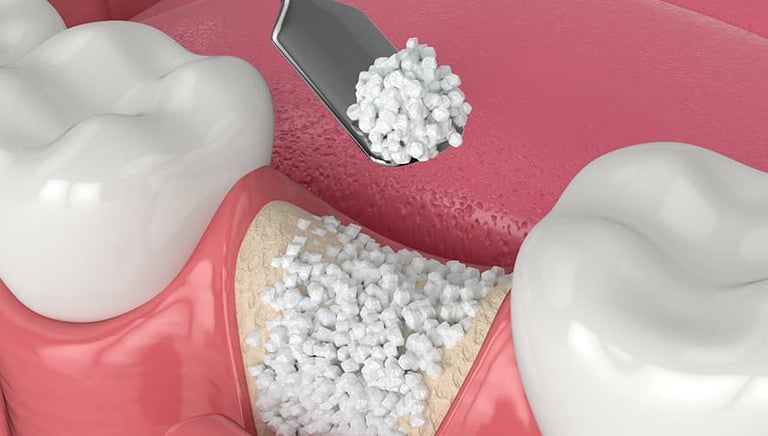 Bone grafting rebuilds jawbone for implant stability. We use autogenous or synthetic grafts, ridge augmentation, and minimally invasive techniques.